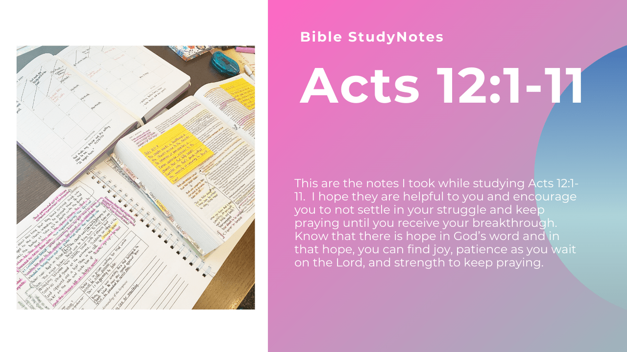 This are the notes I took while studying Acts 12:1-11. I hope they are helpful to you and encourage you to not settle in your struggle and keep praying until you receive your breakthrough. Know that there is hope in God’s word and in that hope, you can find joy, patience as you wait on the Lord,Continue reading “Acts 12:1-11”